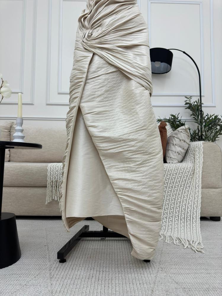 فستان سهرة القماش شانتون لكل المناسبات بدون اكمام